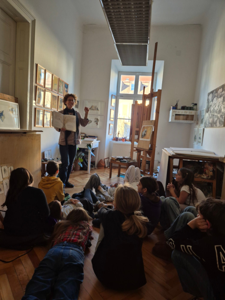 - »Vodstvo po ateljeju s pripovedovanjem, predstavitvijo slikanice ‘Me ne zanima!’ in poklica ilustratorke«, za učenke 3. a in 3. b razreda Likovno kreativne ustvarjalnice (pod mentorstvom Sabine Golež) iz OŠ bratov Polančičev Maribor, 10. 12. 2025.
